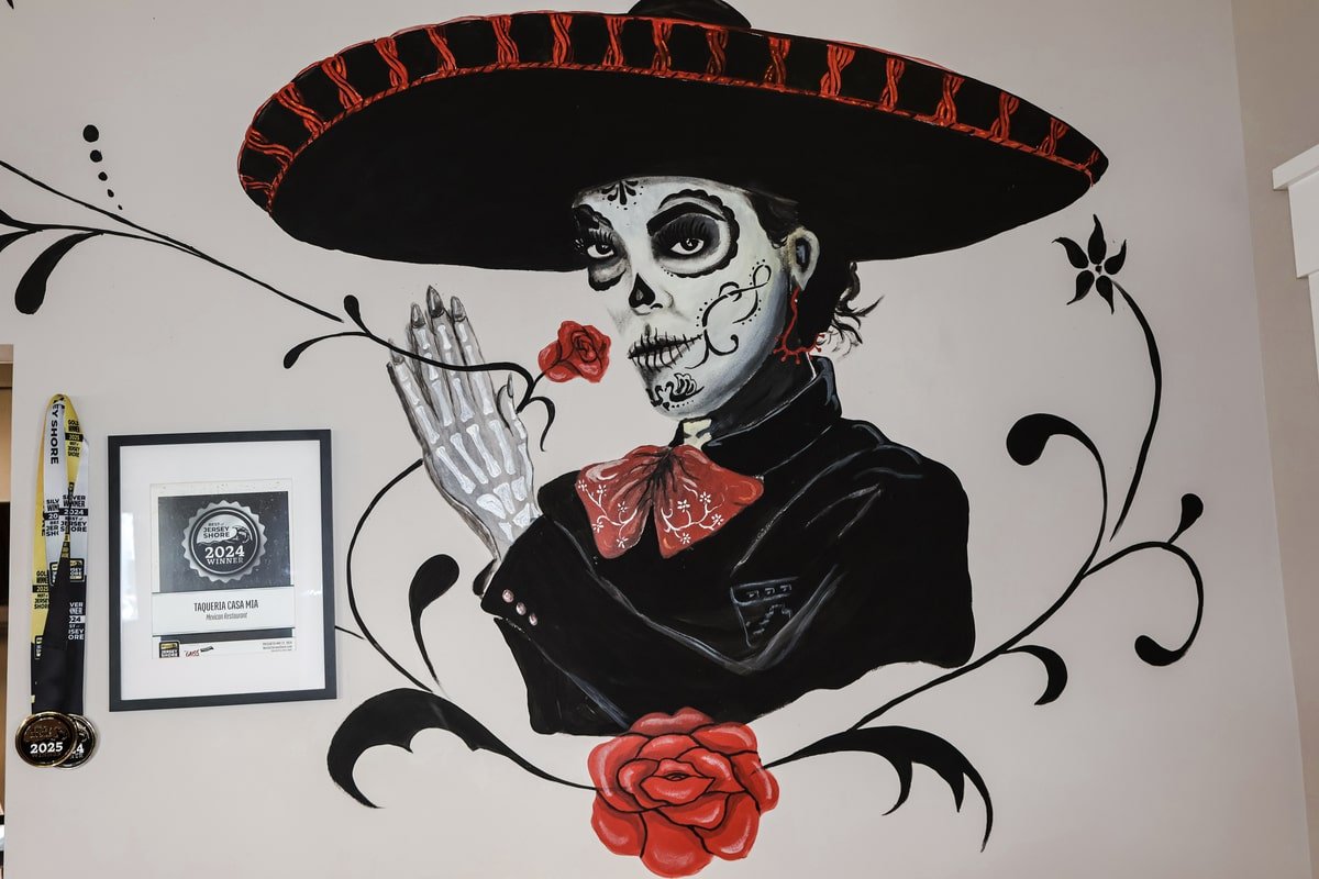 Taqueria Casa Mia logo with sombrero, maracas, and phone number 609-854-3032